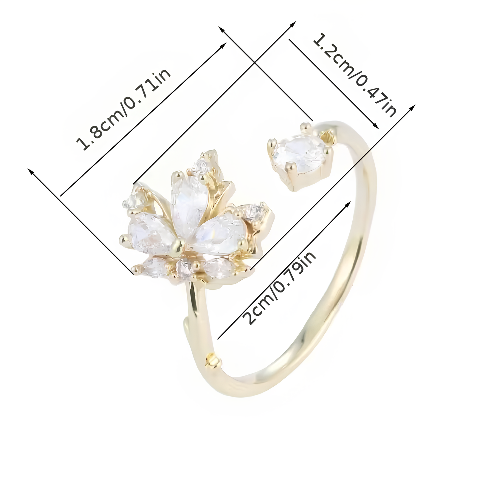 Beyaz & Gümüş Yaprak Tasarım Kadın Yüzük – Zarif Zirkon Taşlı Ayarlanabilir | Dilove